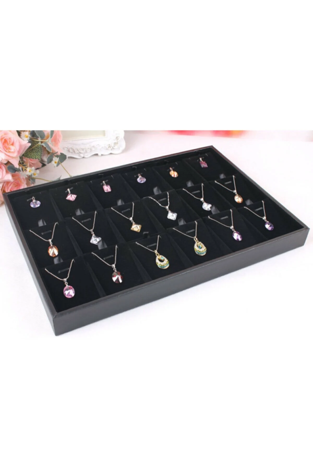 Süet Bölmeli Kolye Küpe Tablası Siyah 15 li