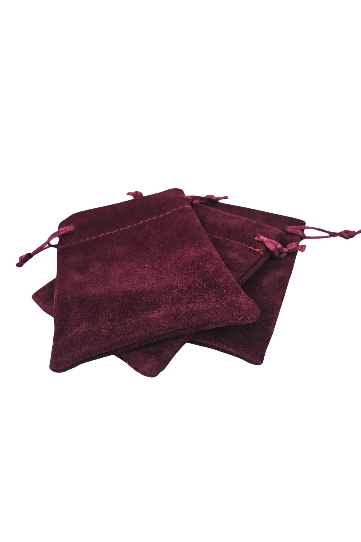 Süet & Kadife Duble Kese Bordo 25 Adet 9x12 cm Takı, Altın Kesesi (ipli & Büzgülü)