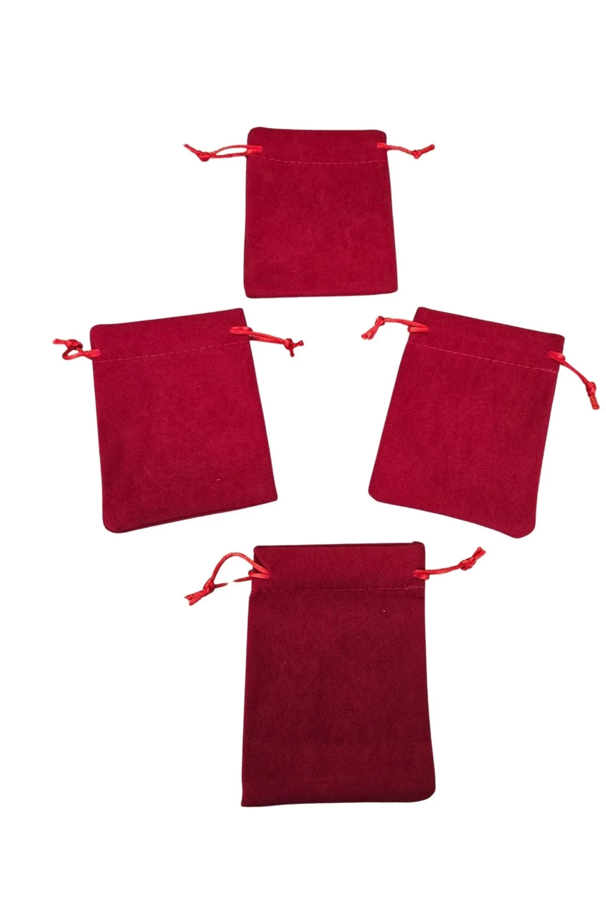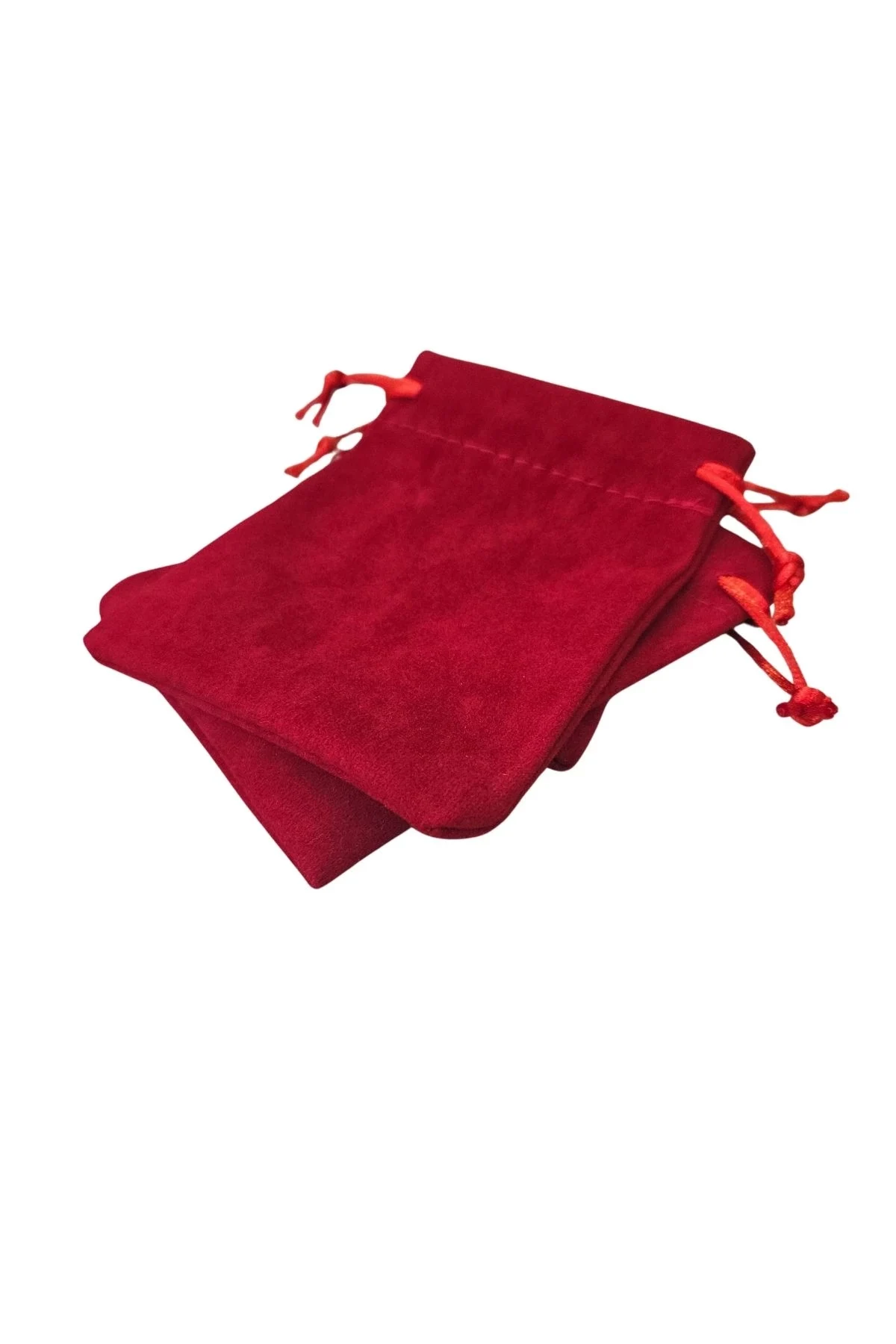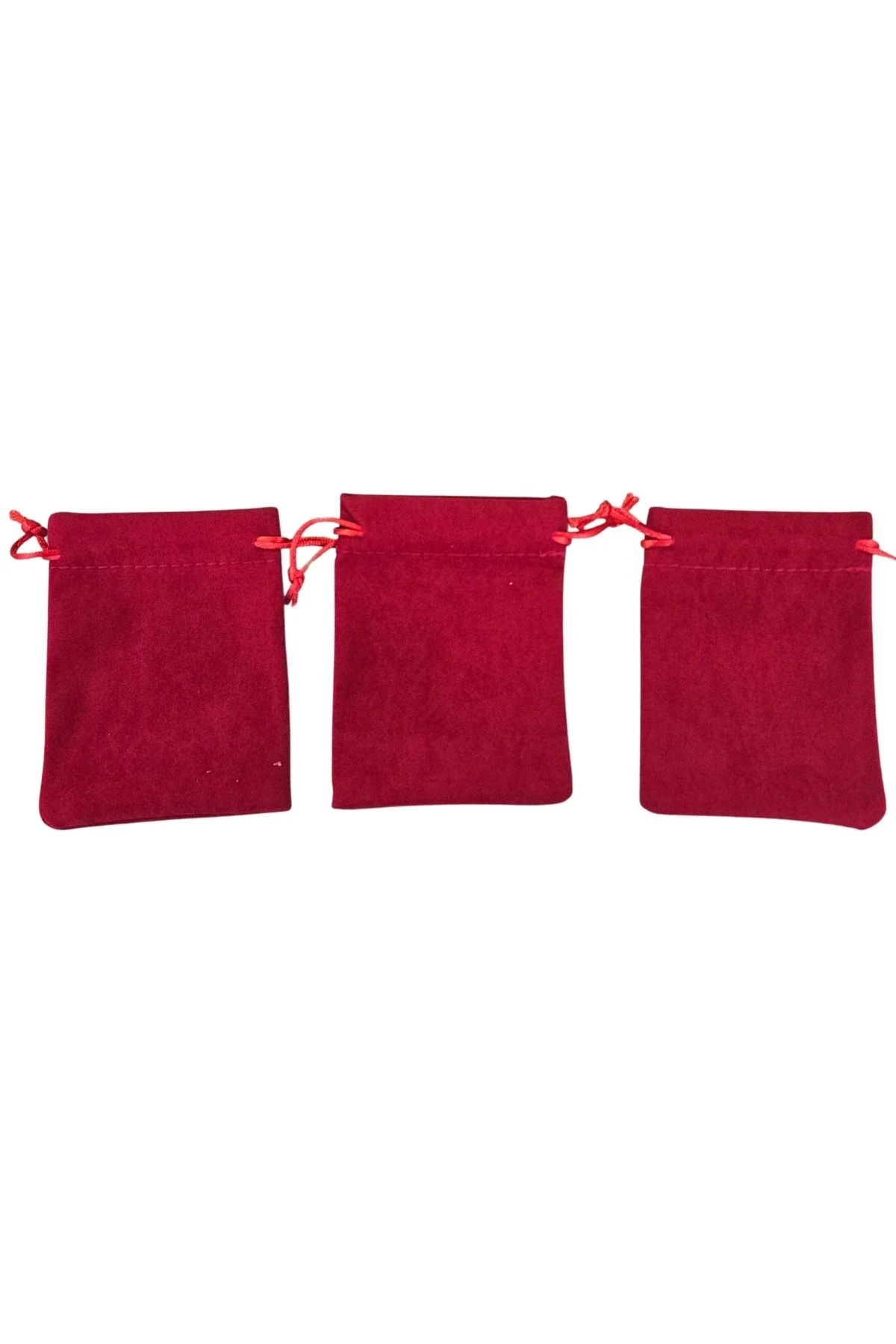 Süet & Kadife Duble Kese Kırmızı 25 Adet 9x12 cm Takı, Altın Kesesi (ipli & Büzgülü)