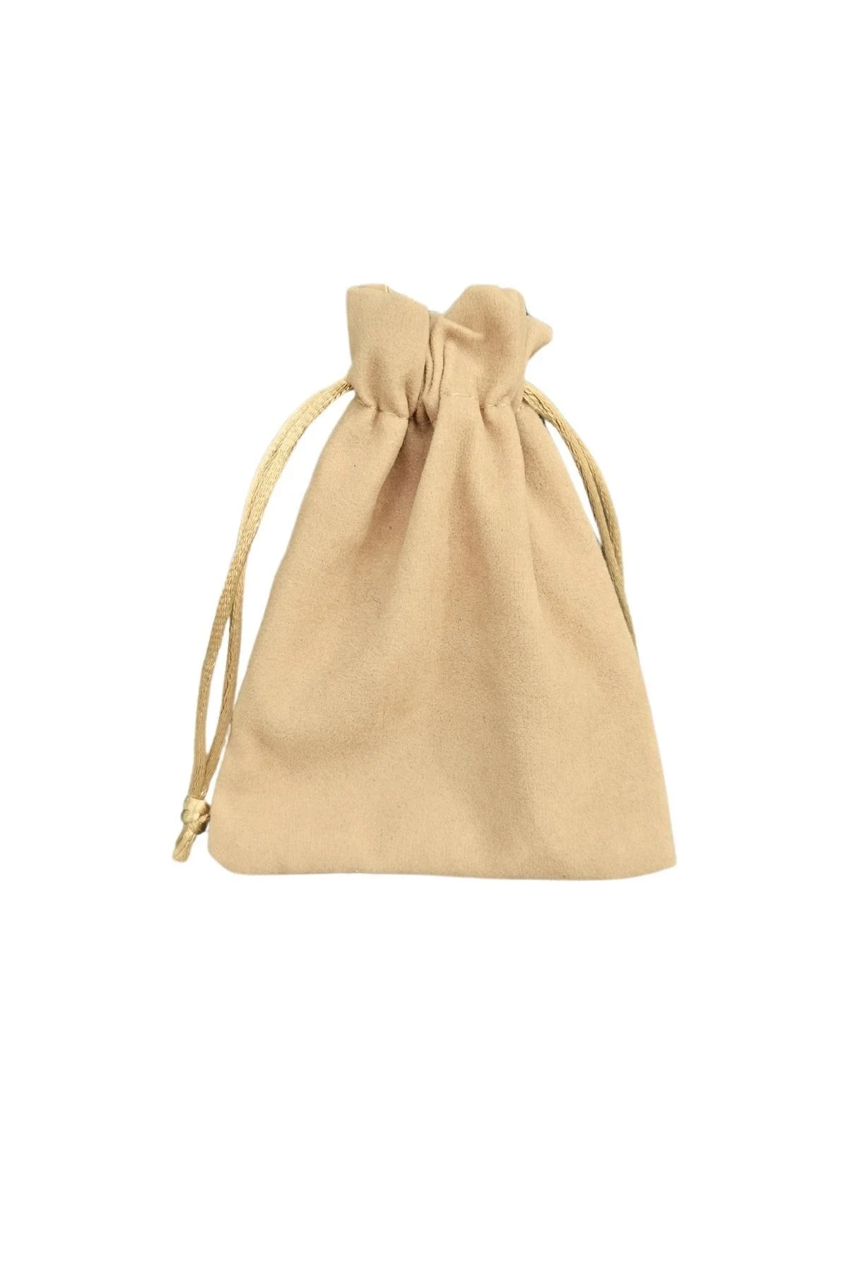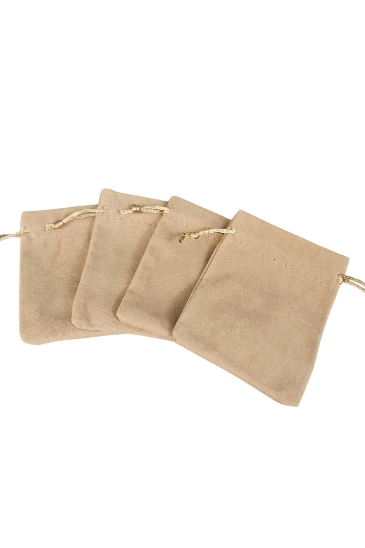 Süet & Kadife Duble Kese Krem 10 Adet 9x12 cm Takı, Altın Kesesi (ipli & Büzgülü)