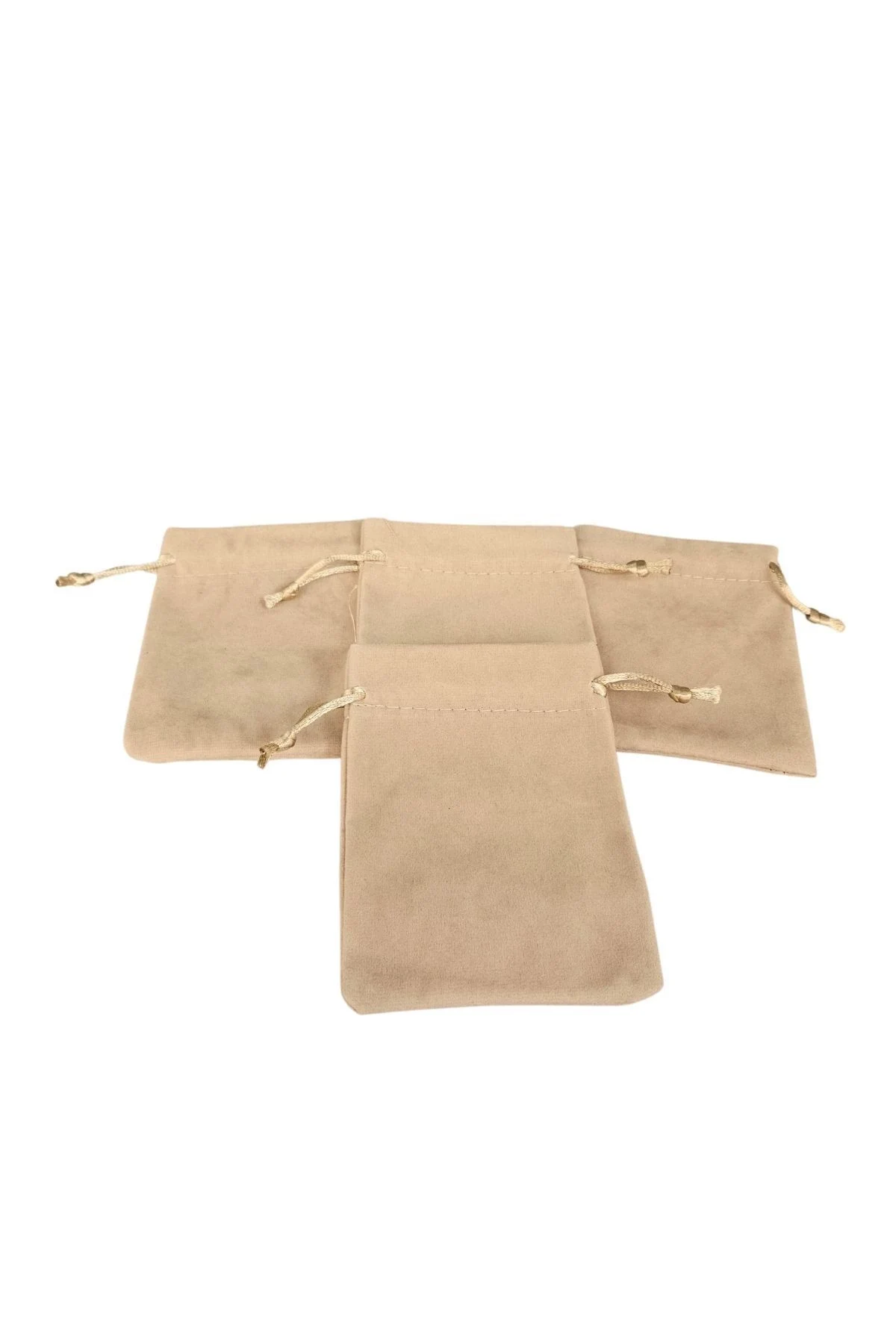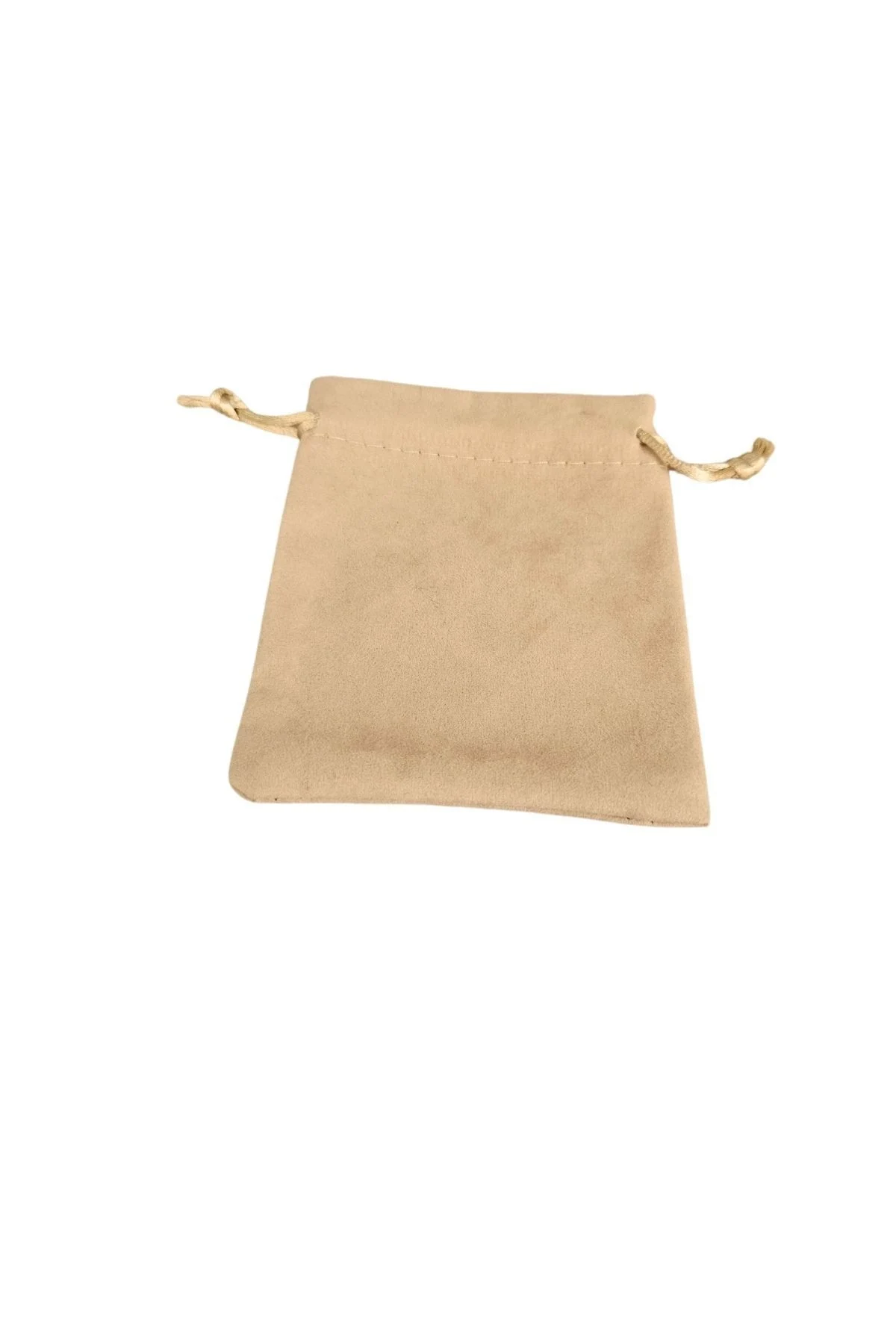 Süet & Kadife Duble Kese Krem 25 Adet 9x12 cm Takı, Altın Kesesi (ipli & Büzgülü)