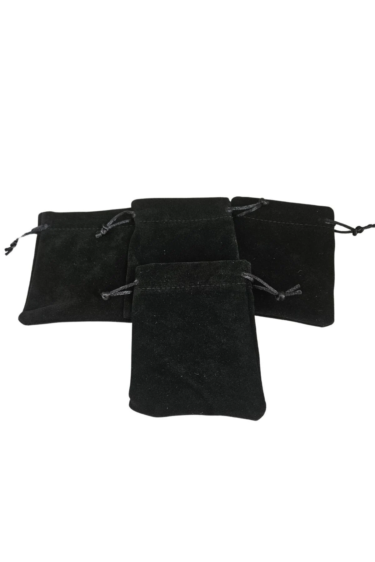 Süet & Kadife Duble Kese Siyah 25 Adet 9x12 cm Takı, Altın Kesesi (ipli & Büzgülü)
