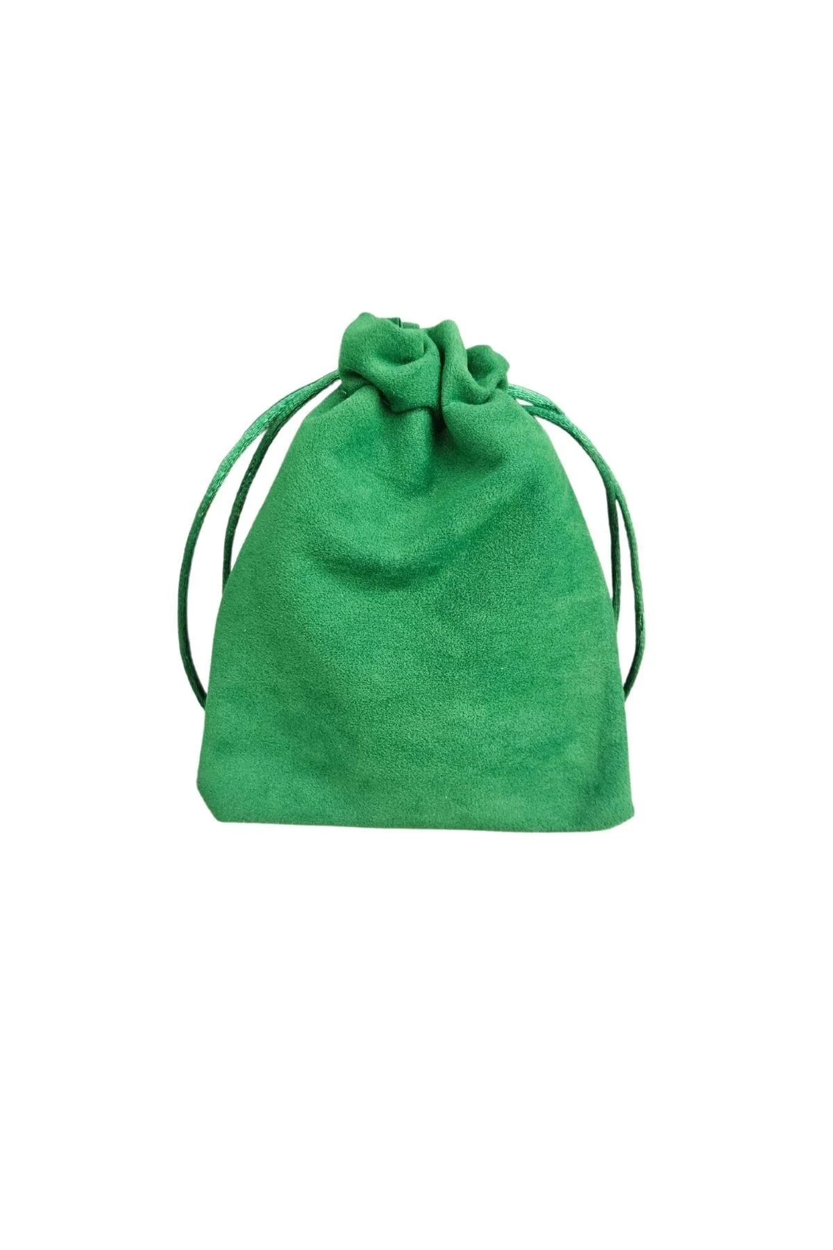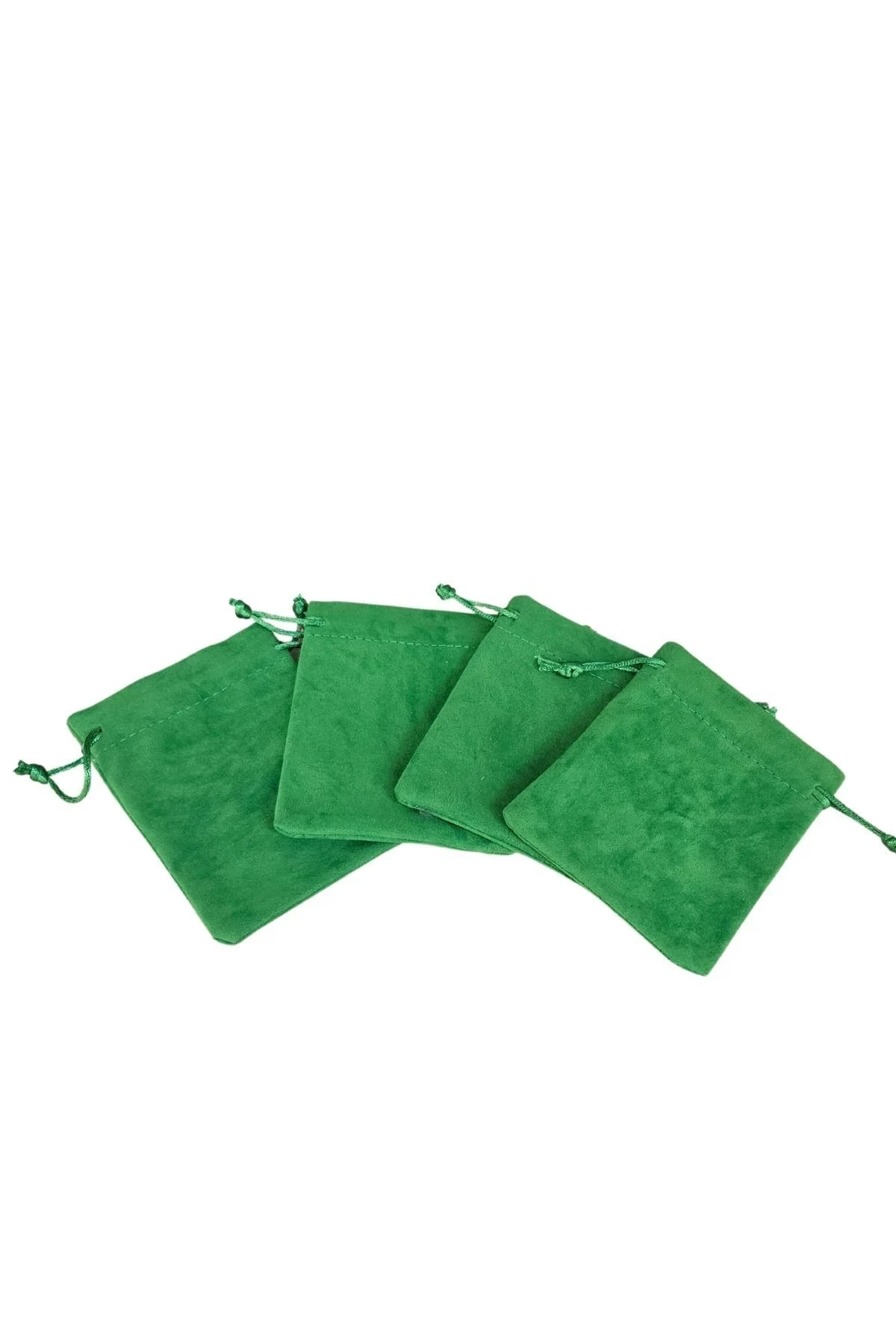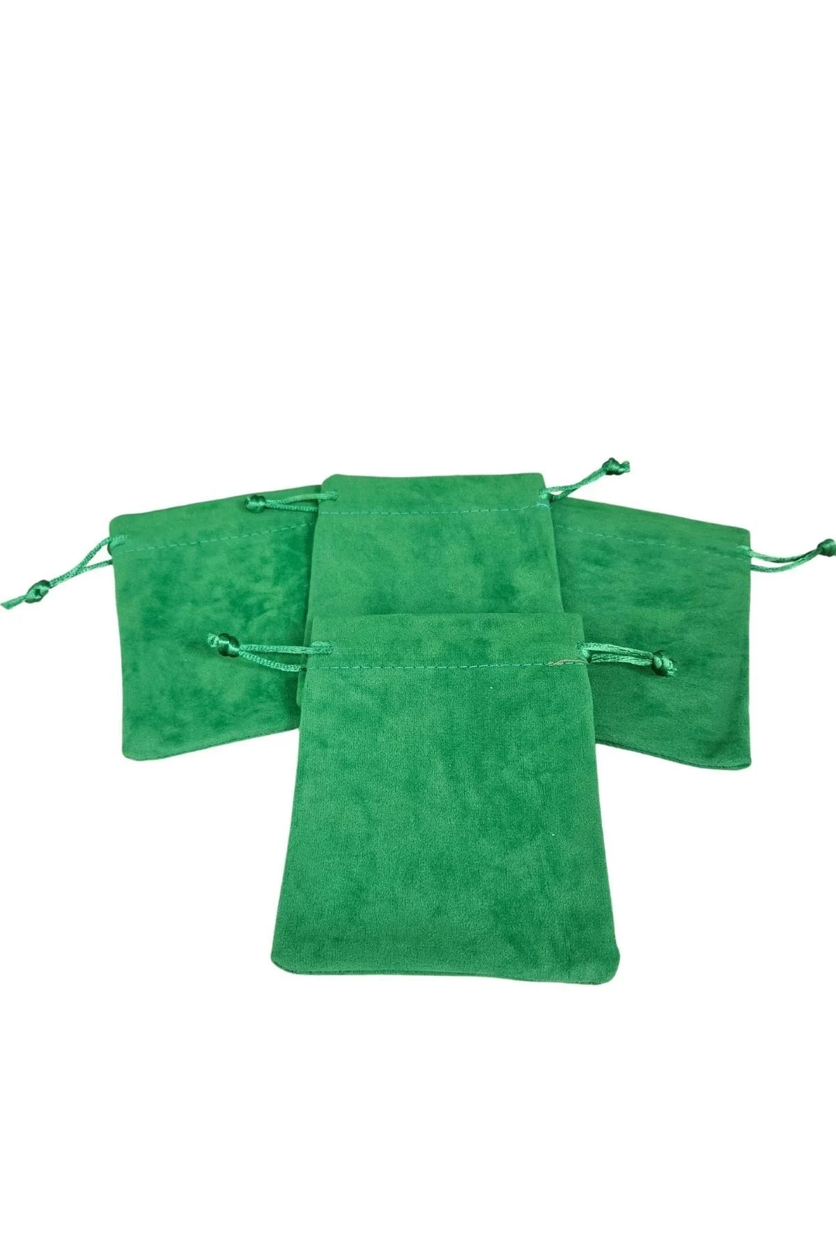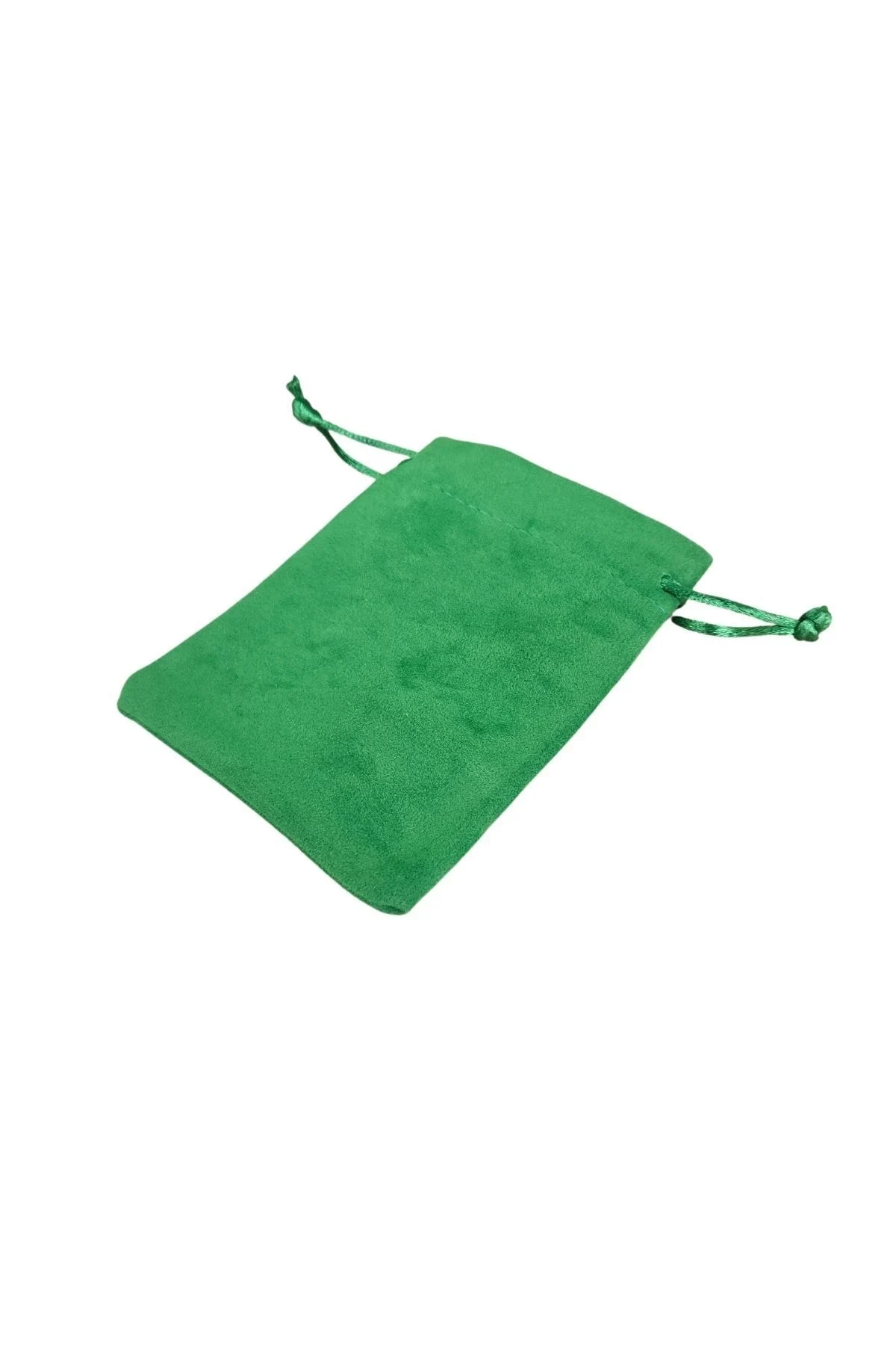 Süet & Kadife Duble Kese Yeşil 25 Adet 9x12 cm Takı, Altın Kesesi (ipli & Büzgülü)