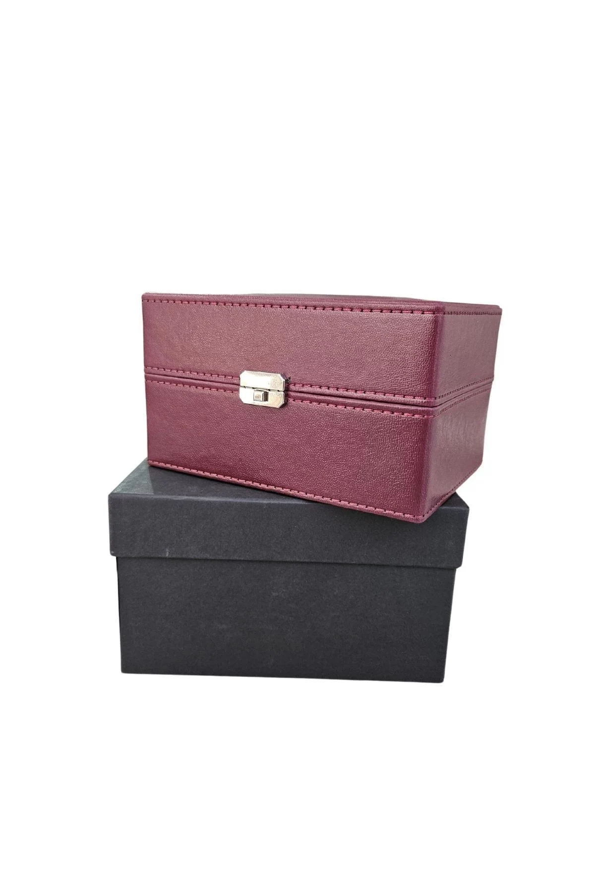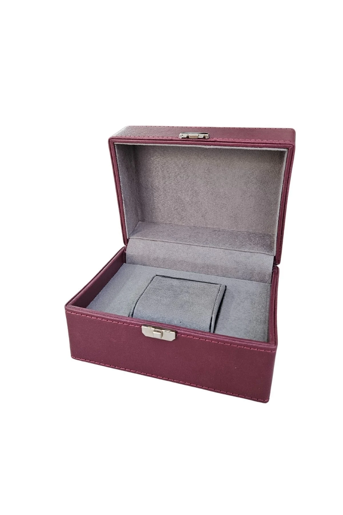 Tekli Basmalı Kilitli Lüx Deri Saat Kutusu (dış Kutulu) (Bordo)