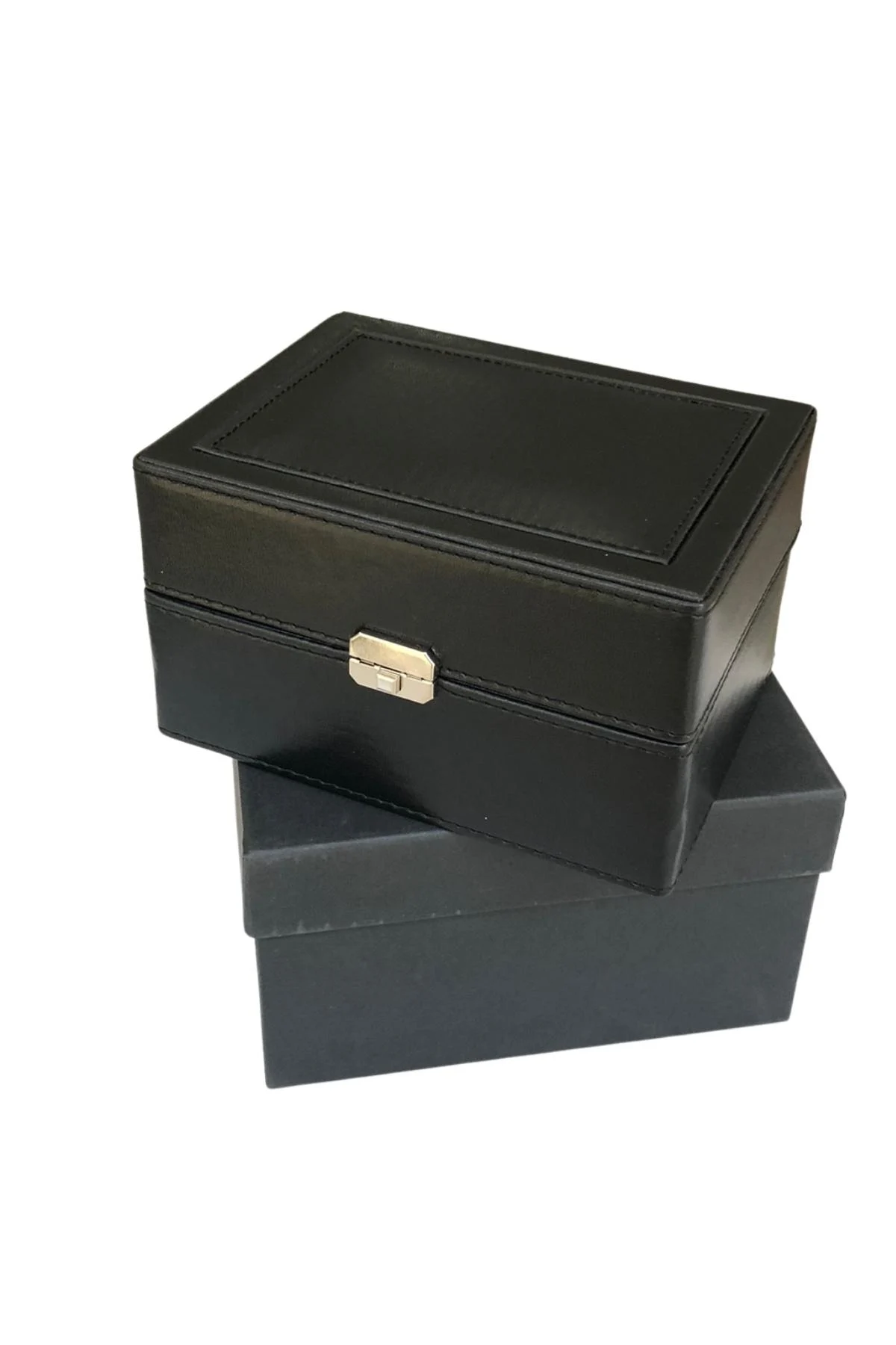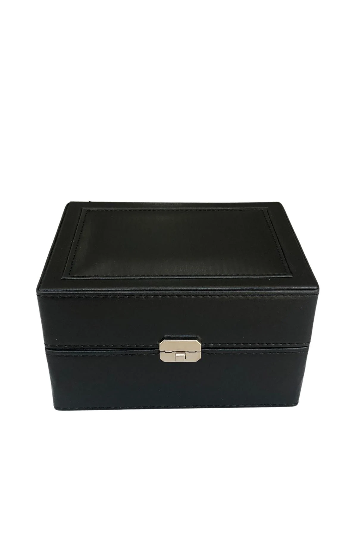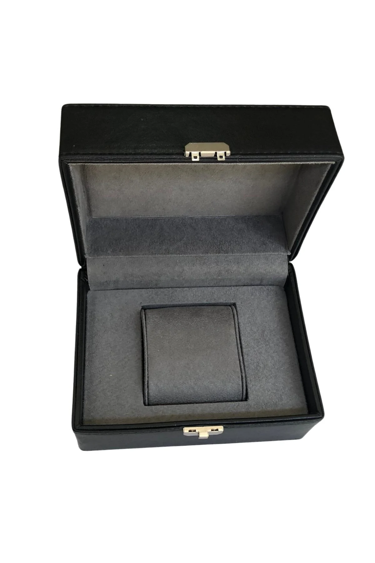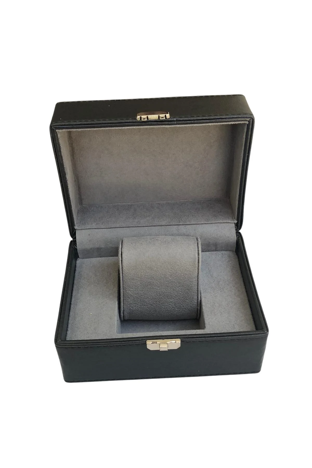 Tekli Basmalı Kilitli Lüx Deri Saat Kutusu (Dış kutulu) (Siyah)