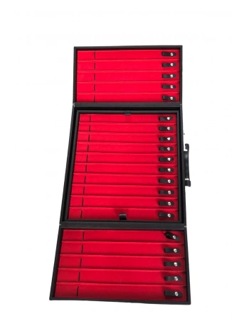 Camlı Kapaklı Çift Kat Tesbih&Bileklik ve takı Tablası Siyah deri/içi Beyaz (21 Kanallı ve Çıtçıtlı)