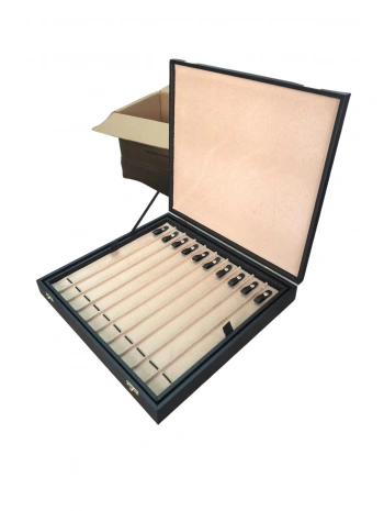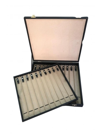 11'li Tesbih & Bileklik Sunum Tablası (ahşap Kasa) Siyah Deri 35x38 Cm