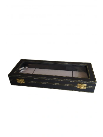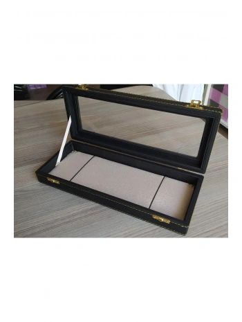 Deri Dikişli Ultra Geniş Camlı Tesbih& Bileklik Kutusu Siyah