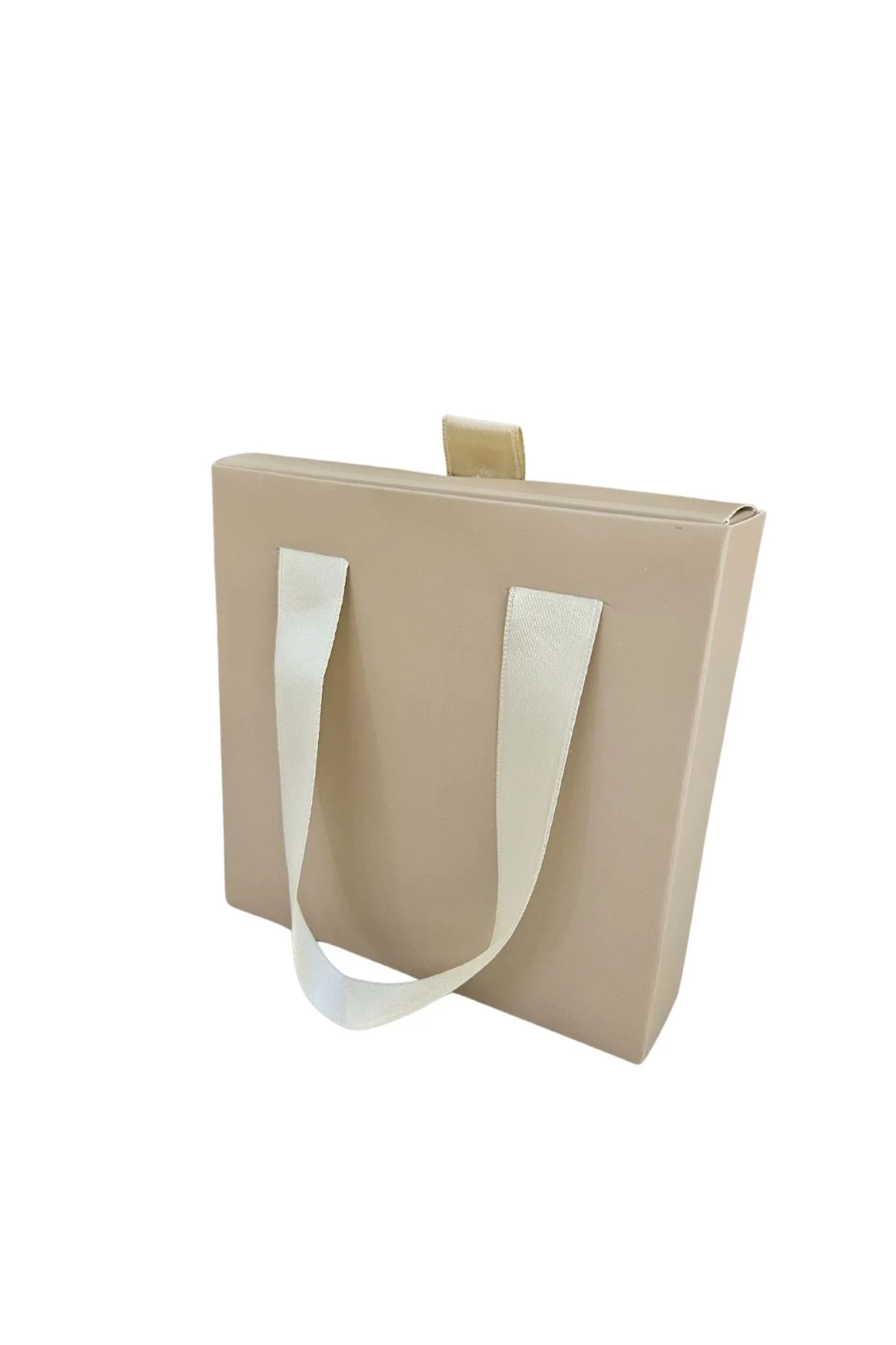 Krem 1 Adet Çekmeceli Ve Çantalı Karton Kolye&mini Set Kutusu (12x12 Cm )