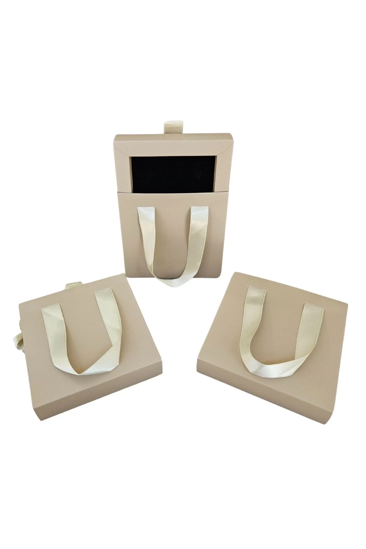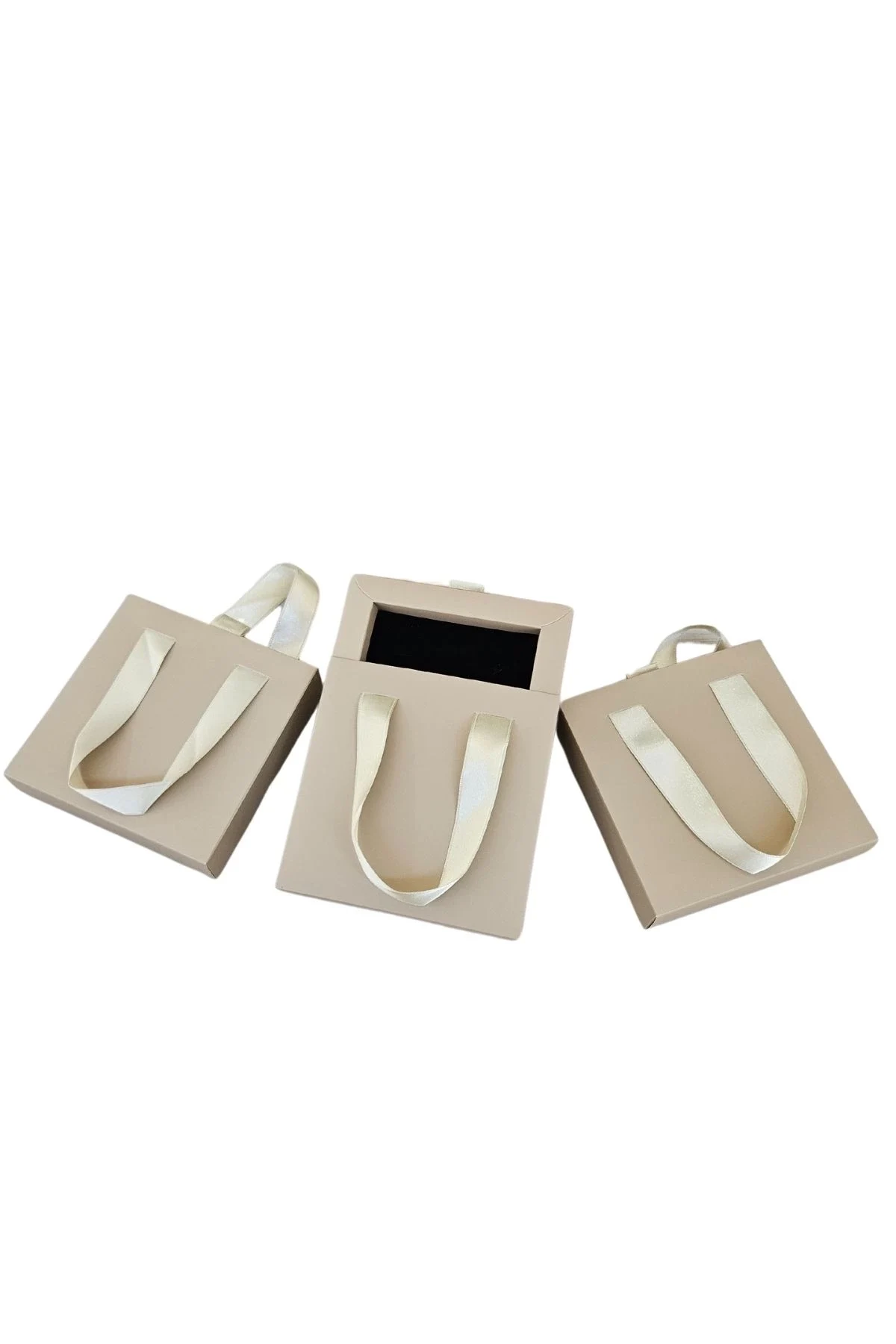Toprak rengi 1 Adet Çekmeceli Ve Çantalı Karton Kolye&mini Set Kutusu (12x12 Cm )