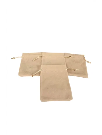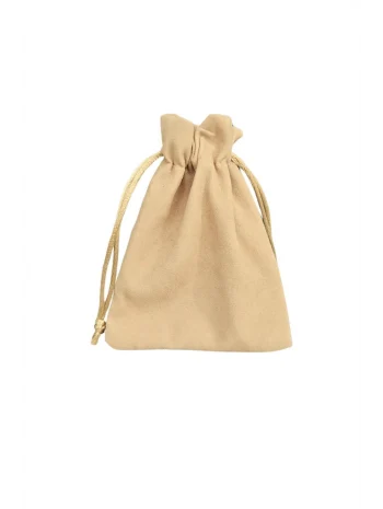 Süet & Kadife Duble Kese Krem 25 Adet 9x12 cm Takı, Altın Kesesi (ipli & Büzgülü)