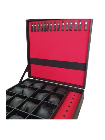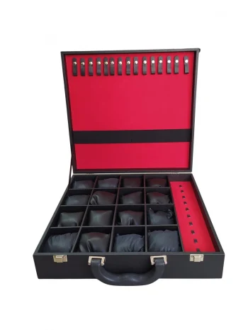 Saat& Yüzük&Tesbih ve Zincir Çantası 16 Lİ Ahşap Kasa Üzeri Siyah Deri Kaplama