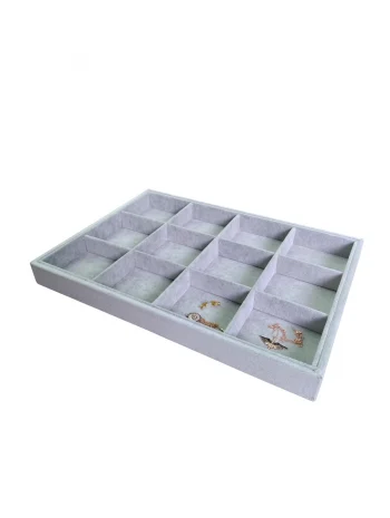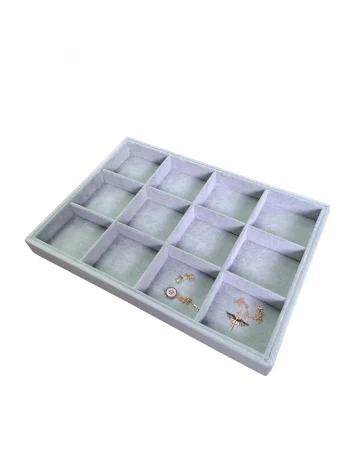 12 Bölmeli Kolye Ucu Küpe Yüzük Servis Tablası Grİ Süet