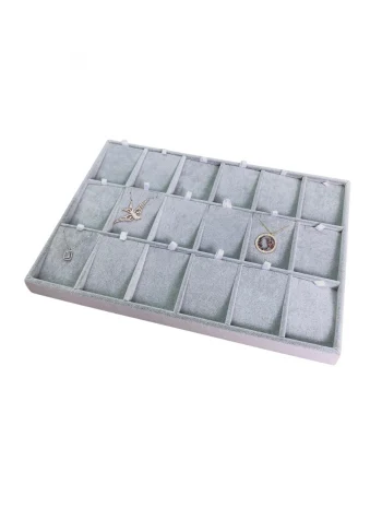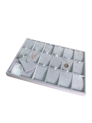 Bölmeli Kolye Küpe Tablası Gri Süet 18'li ( Evalı) (25x35 cm)