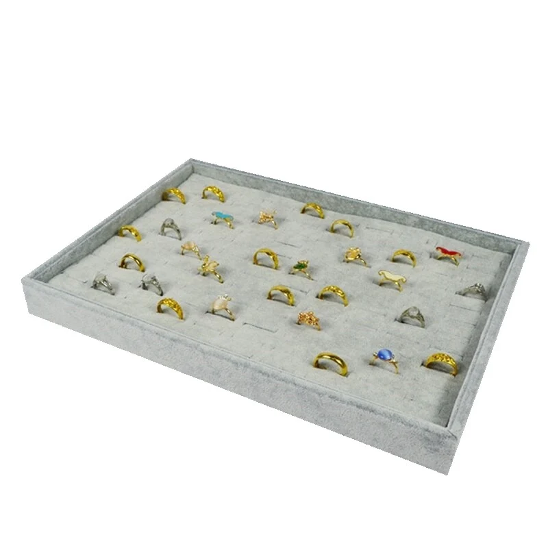 Organizatör Gri Süet Tabla Kolye & Yüzük Düzenleyici Ve Gözlük(8 Yastık)(6 Gözlük & 6 Bölmeli)36x38