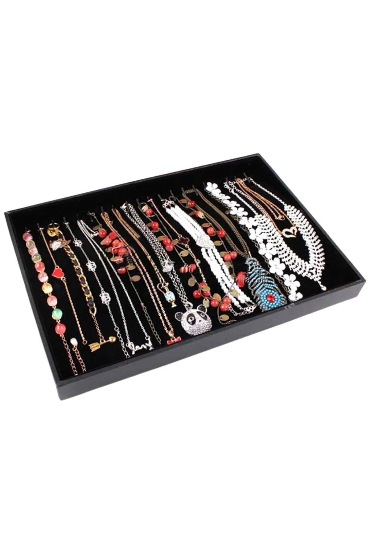 İçerisinde bir çok takınızı sergileyebilrsiniz . içerisinde takı ları tuturabilmeniz için 20 ad çentik bulunur. ebatları 24x35x 5 cm dir .